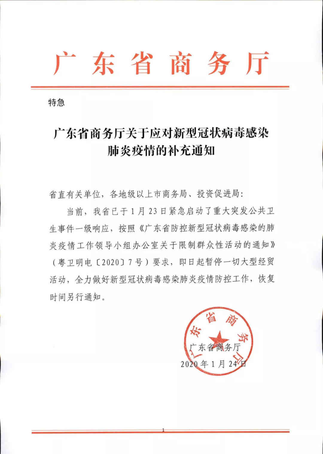 針對目前“新型冠狀病毒”的疫情防控要求,接廣州市商務局《關于暫停全市大型展覽活動的通知》,即日起暫停全市所有大型展覽活動,全力做好新型冠狀病毒感染肺炎疫情防控工作。為保障廣大展商和觀眾的健康,保證展覽會的展出效果,原定于2020年2月9-11日在廣州市保利世貿博覽館舉辦的“第23屆迪培思廣州國際廣告標識及LED展”將延期舉辦,具體恢復時間將根據形">